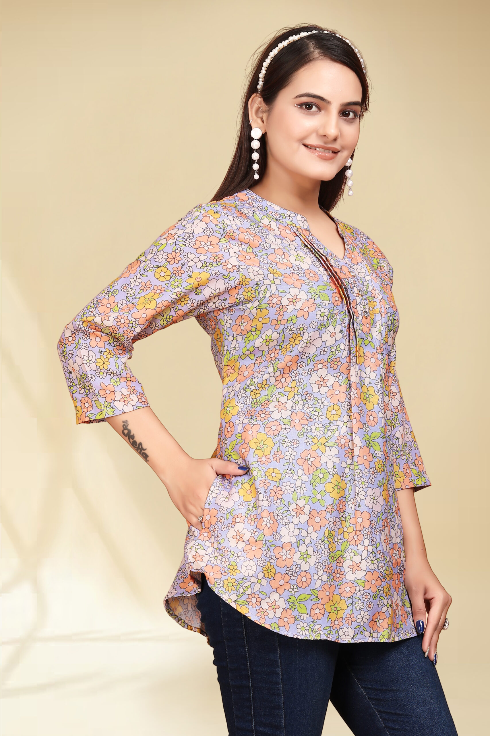 The Sleeves: Versatile 3/4 length sleeves that offer a balanced look for year-round wear.