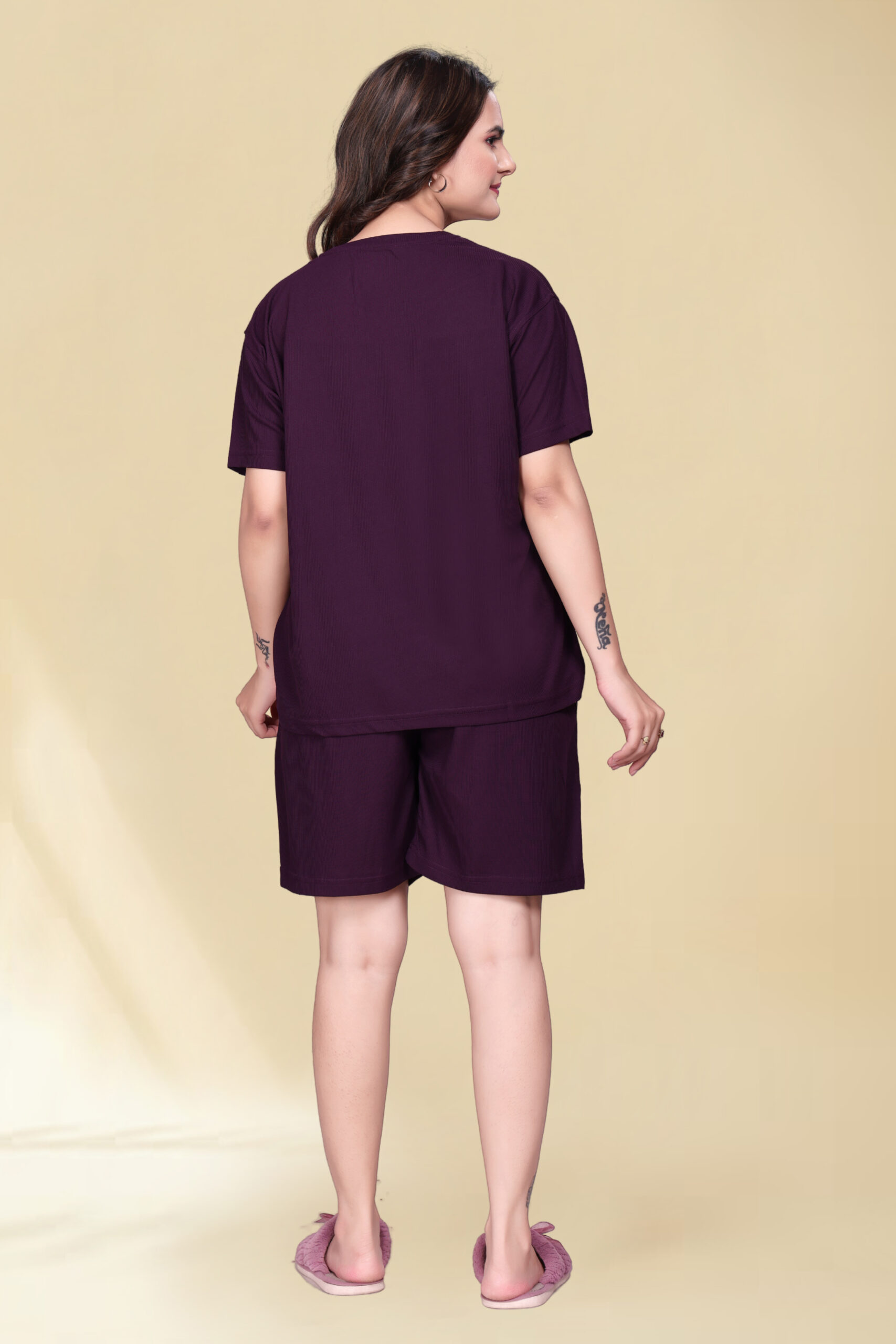 2 reviews for Casual Wear Solid/Plain Night Suit Set of Top & Shorts Co Ord Set