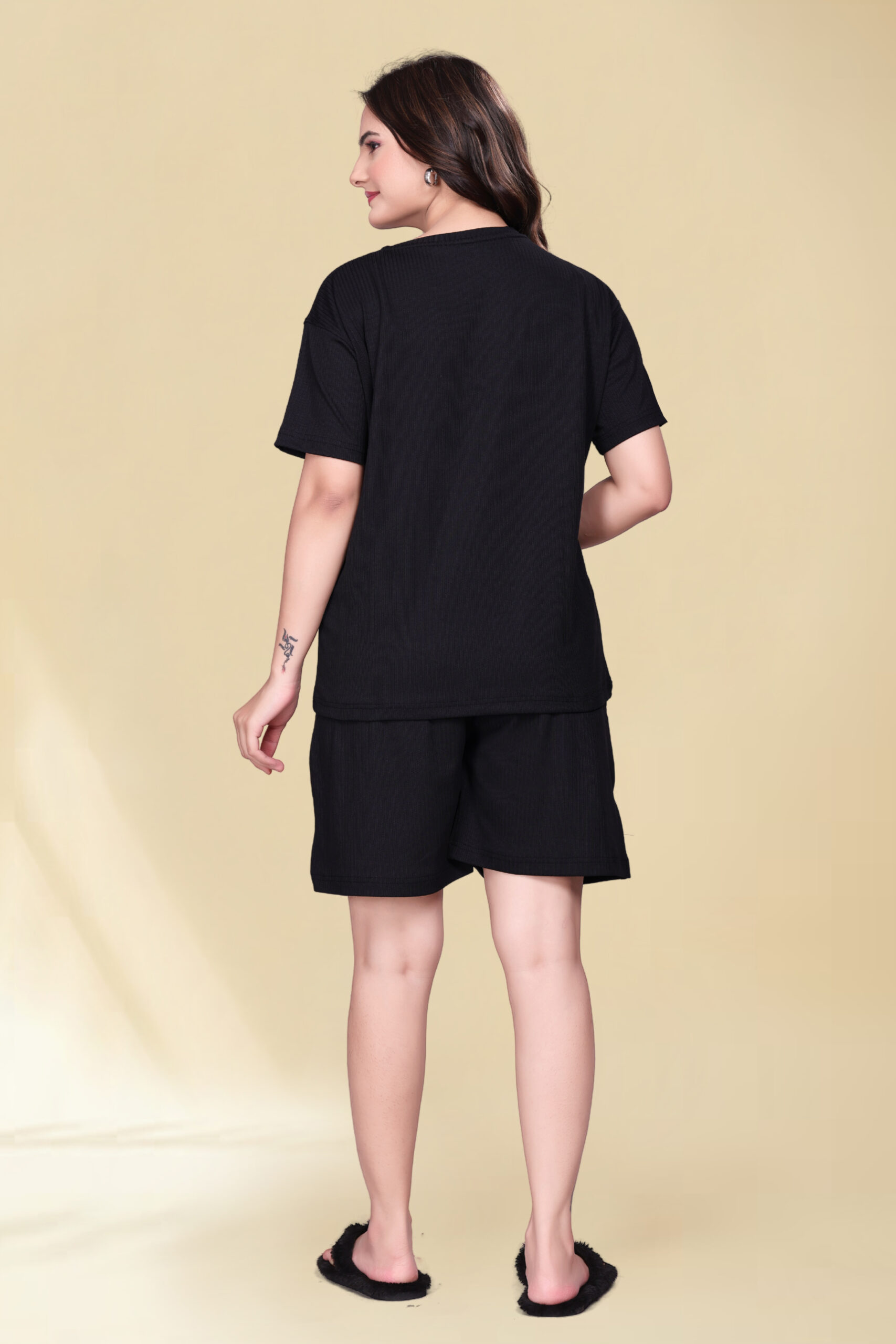 Casual Wear Solid/Plain Night Suit Set of Top & Shorts Co Ord Set