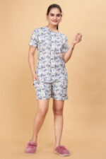 Casual Wear Solid/Plain Night Suit Set of Top & Shorts Co Ord Set