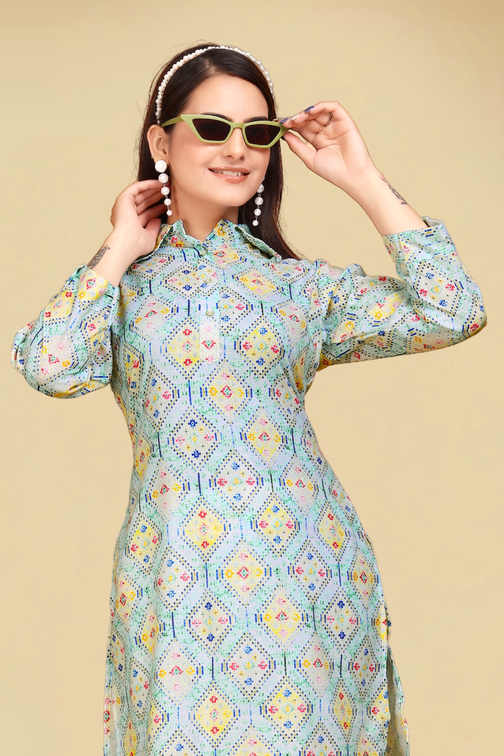 Modern Ethnic: Pair with metallic flats and statement earrings for a festive yet comfortable daytime look.