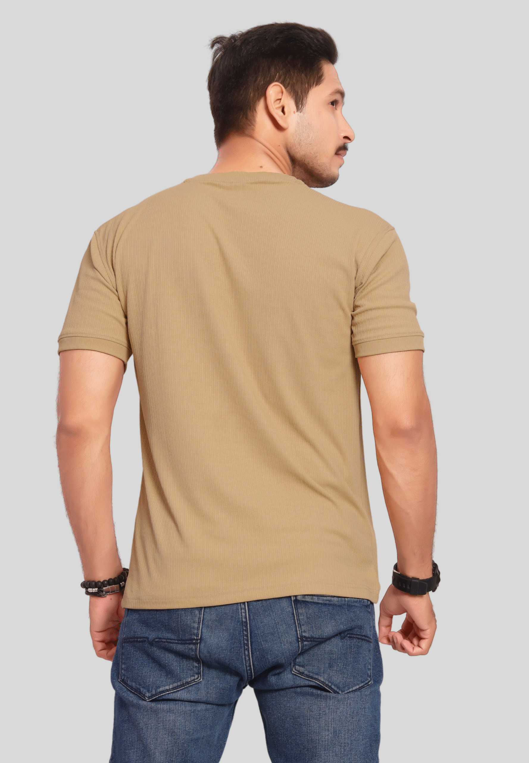Upgrade your casual wardrobe with this stylish Light Green Ribbed T-Shirt for men. Crafted from a soft, breathable cotton-blend fabric, this t-shirt ensures all-day comfort and ease of movement. The subtle ribbed texture adds a modern touch, while the classic crew neckline and short sleeves provide a timeless silhouette. Featuring a minimal triangle logo on the chest, this tee is perfect for both everyday wear and relaxed outings. Pair it effortlessly with jeans or joggers for a cool, laid-back look.