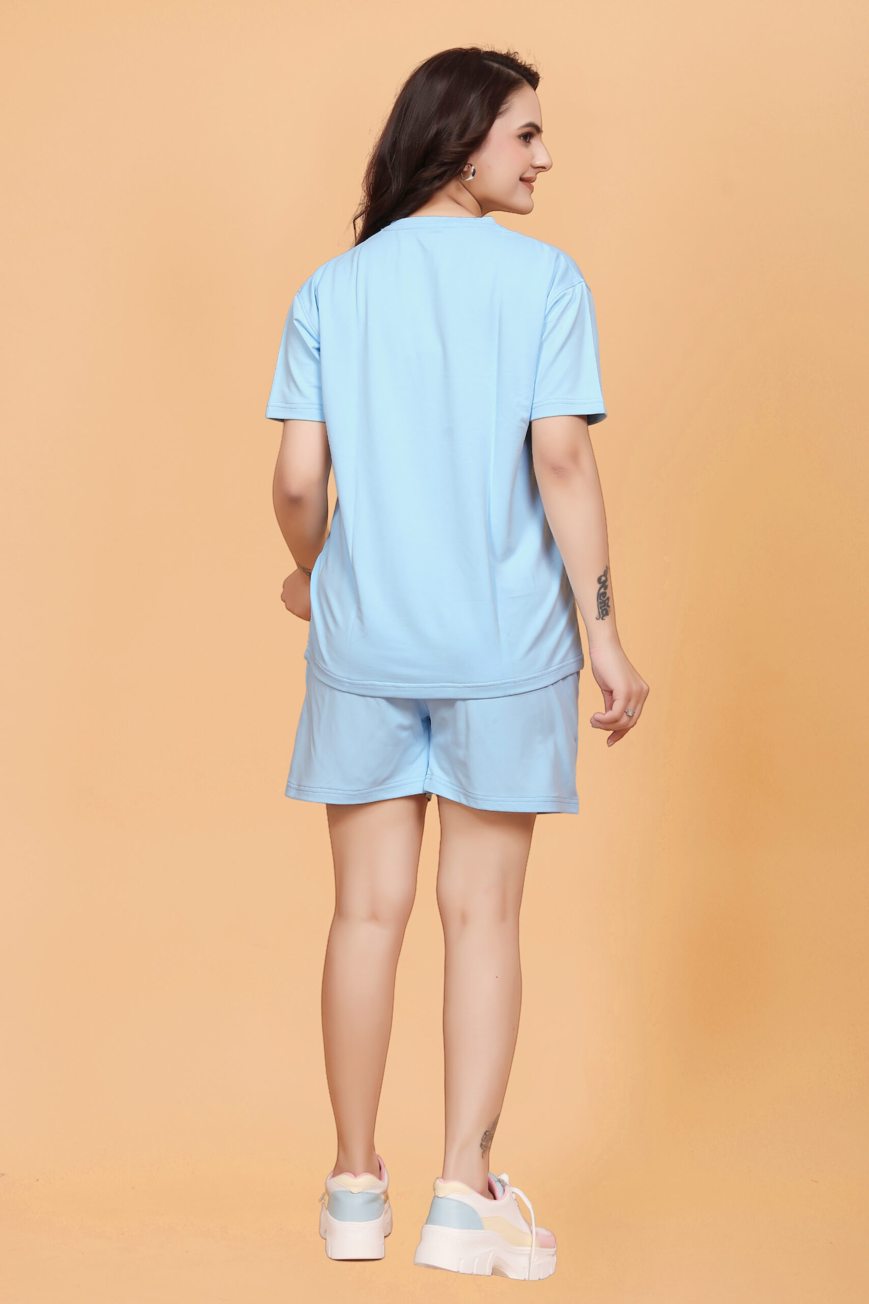 Featuring a relaxed-fit solid T-shirt and matching shorts, this co-ord set combines effortless style with all-day comfort. The T-shirt features a relaxed, flattering fit with short sleeves, while this set is designed to keep you feeling fresh and fabulous throughout the night. Whether lounging at home or enjoying a slumber party with friends, this nightdress set is sure to become your go-to choice for a good night’s rest.