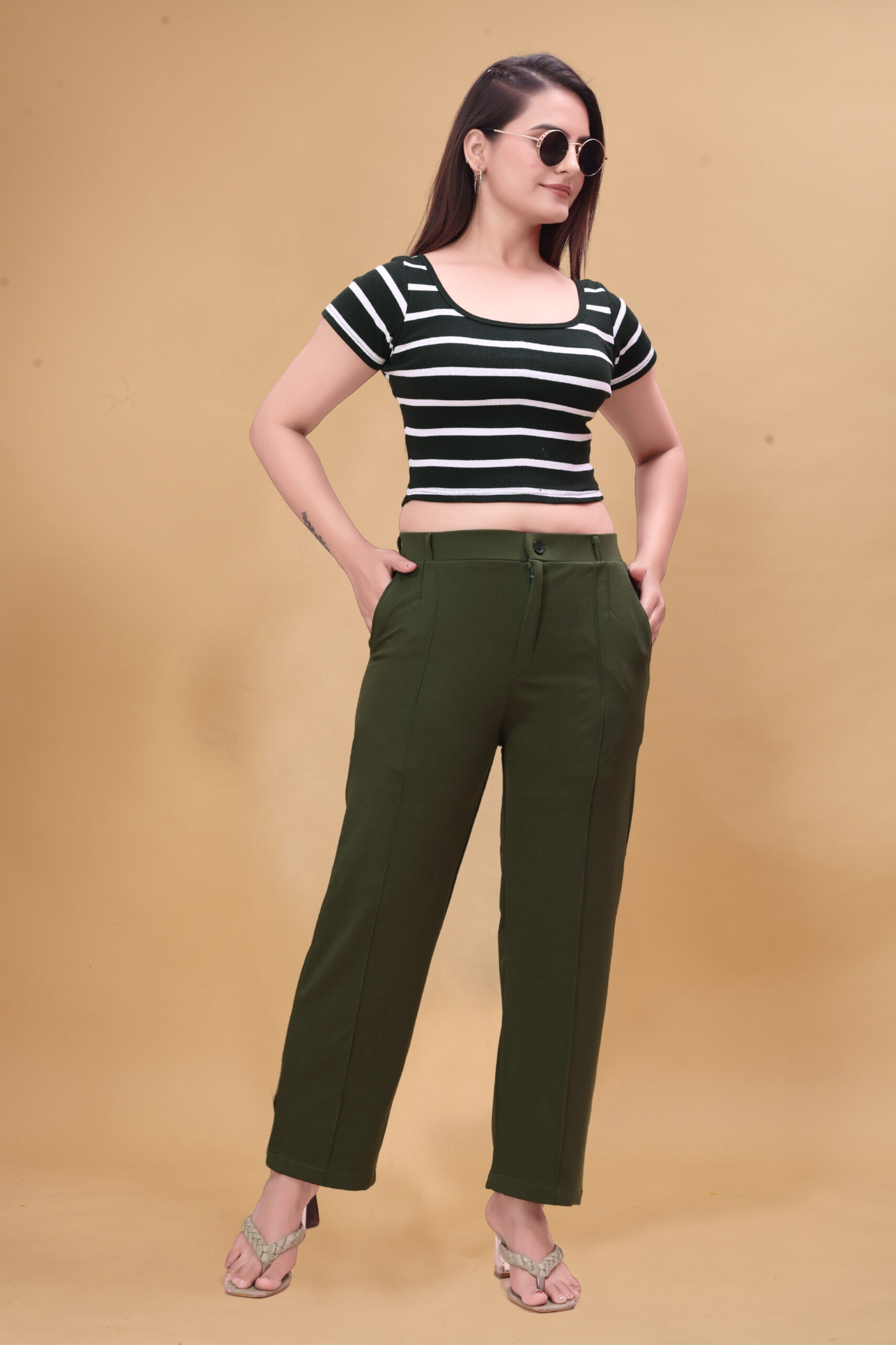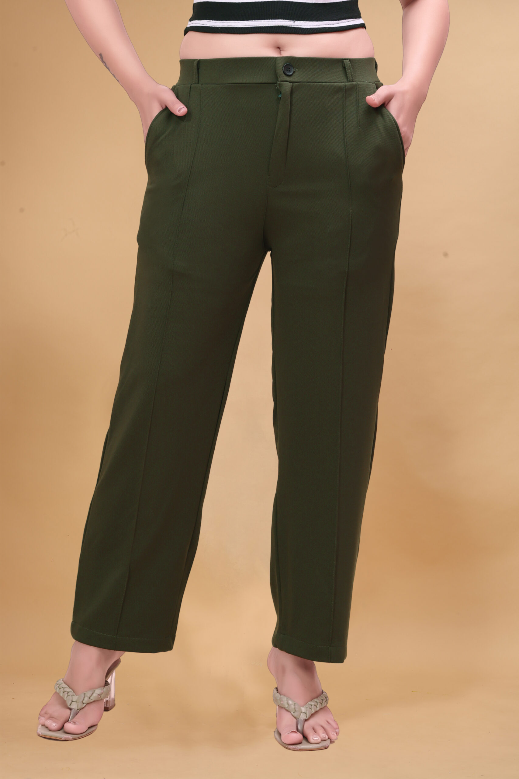 Step into effortless elegance with these classic straight-fit trousers, designed for the modern woman who values both style and comfort. Tailored with precision, these mid-rise trousers feature a sleek silhouette with front pleat detailing and a clean waistband finish. The deep pockets add functionality, while the versatile grey tone makes them a perfect choice for workwear, formal occasions, or chic everyday dressing.
