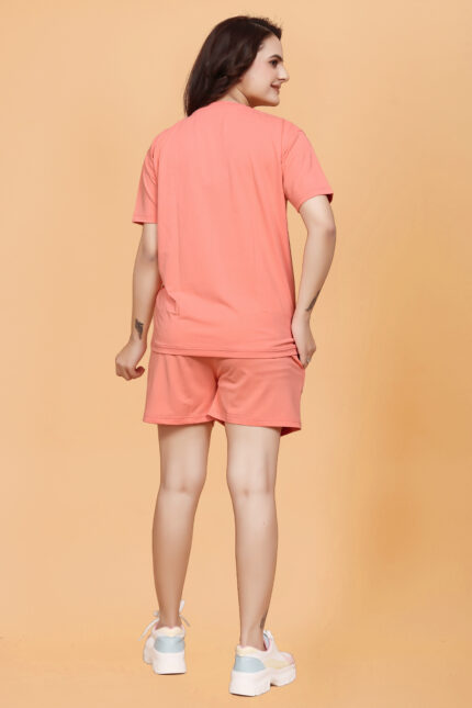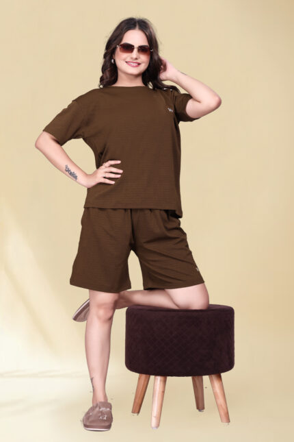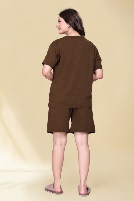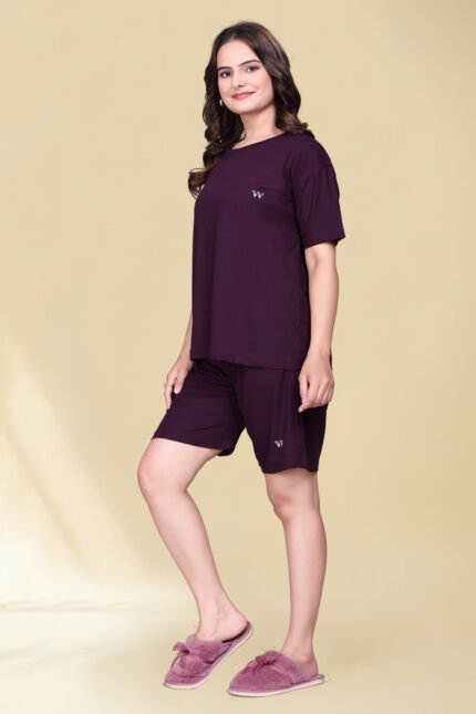 Casual Wear Solid/Plain Night Suit Set of Top & Shorts Co Ord Set